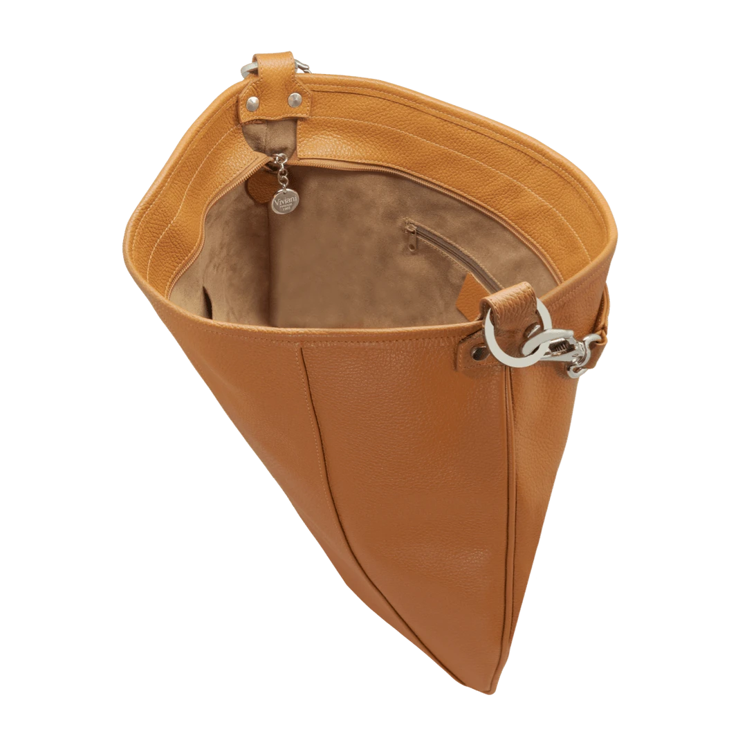 Women’s bag with double shoulder and cross body strap, handmade in “alce” style calf leather, light, spacious, can hold A4 documents and folders, suitable for both work and everyday use.